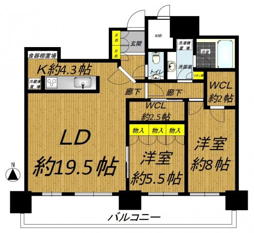 - 61階建の35階に位置する2LDK